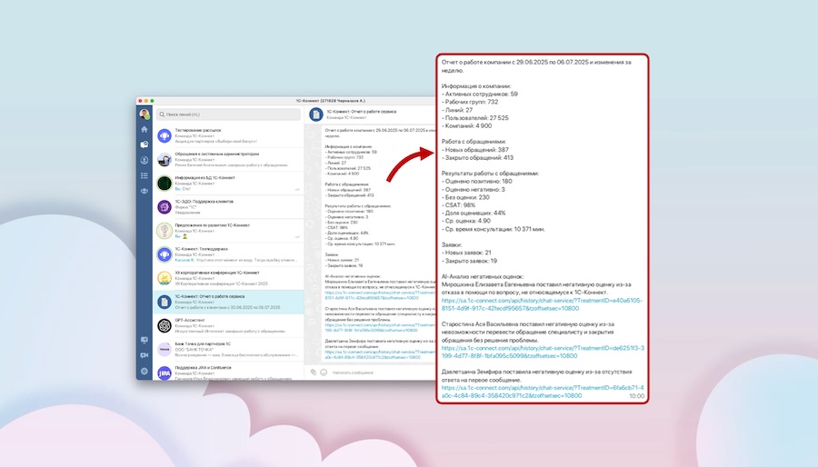 Обновленный авто-отчет о работе компании через 1С-Коннект