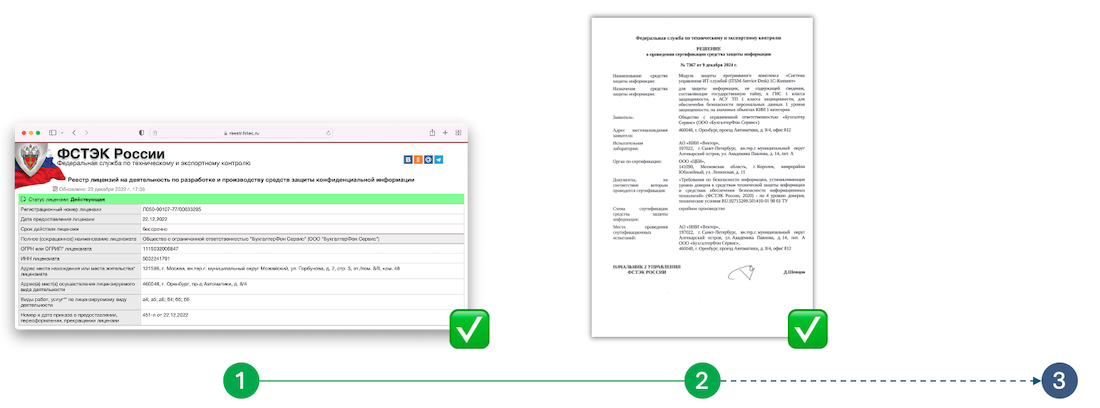 Сертификат ФСТЭК является подтверждением, что модуль защиты программного продукта (инструмент защиты данных) подготовлен к необходимым проверочным процедурам и соответствует действующим стандартам и требованиям по информационной безопасности.