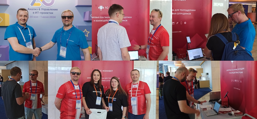 В ходе конференции мы традиционно представили новинки сервиса 1С-Коннект, пообщались с посетителями нашего стенда и сделали доклад на тему современных подходов при внедрении и сопровождении проектов в экосистеме 1С.