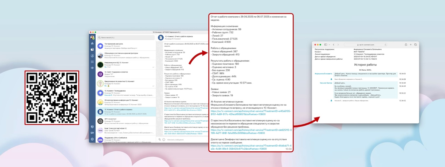 AI-анализ негативно оцененных обращений предоставляется с помощью GPT-Ассистента 1С-Коннект.