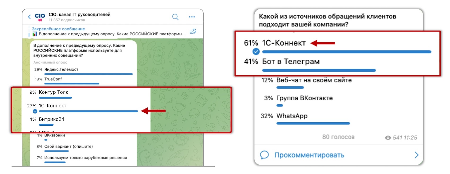 1С-Коннект - платформа для организации поддержки, включает также корпоративный мессенджер, видеоконференции (ВКС), удаленный доступ к рабочему столу и другие инструменты. Сервис лидирует во многих опросах как альтернатива Skype и/или AnyDesk.